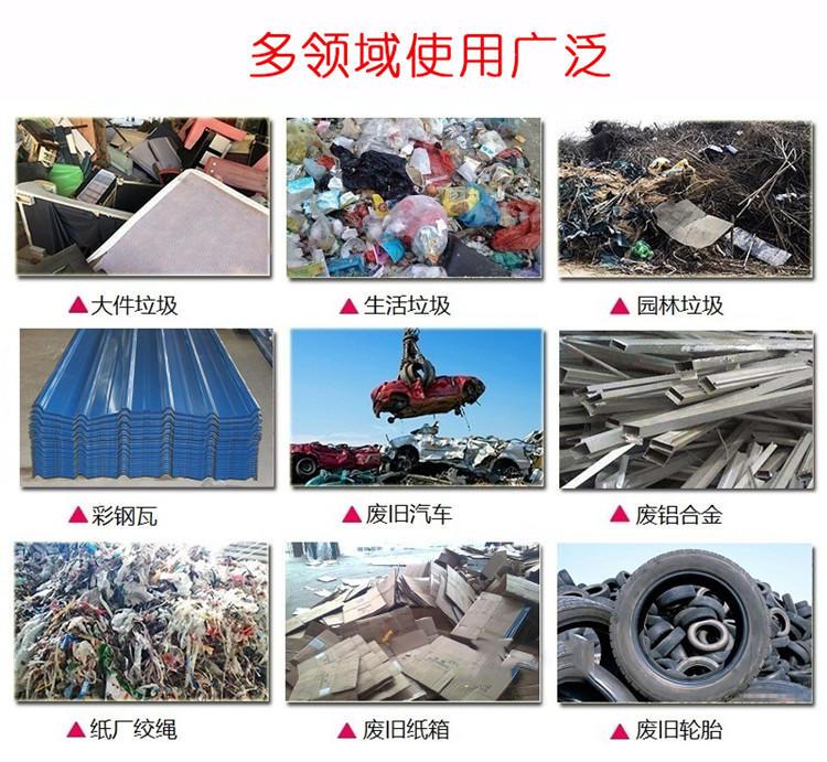 撕碎機(jī)按軸的數(shù)量可分為: 單軸撕碎機(jī)、雙軸撕碎機(jī)、 三軸撕碎機(jī)、 四軸撕碎機(jī);可滿足各行業(yè)的廢料回收要求,適合撕碎較厚難碎物料,如:電子垃圾、塑料、金屬、木材、廢舊橡膠、包裝桶、托板等??苫厥詹牧戏N類繁多,經(jīng)撕碎后的物料可直接回收使用或根據(jù)需求作進(jìn)一步細(xì)化處理。適用于工業(yè)廢棄物回收、醫(yī)療回收、電子制造、托板制造、木材加工、生活垃圾回收、塑料回收、輪胎回收、造紙等行業(yè)的應(yīng)用。